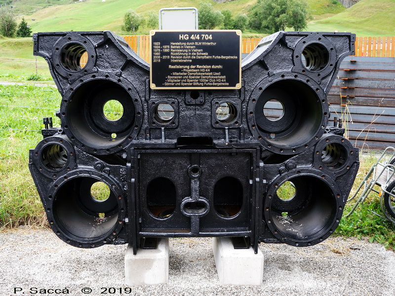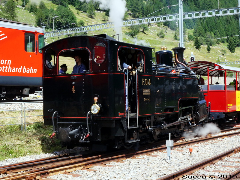 | Sopra : HG 4/4 704, SLM 1923, Realp Deposito, 3 agosto 2019 ( ferma per guasto ) | |||||