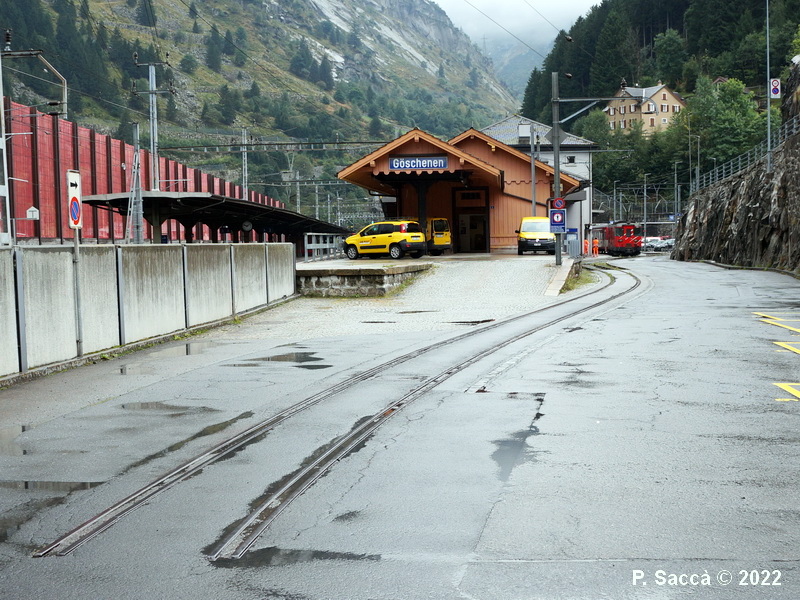 | Sopra : Goschenen, panoramica della stazione FFS, vecchio tracciato del raccordo FO al magazzino, deposito ( ora in uso a MGB Hystoric .? ) | |||||