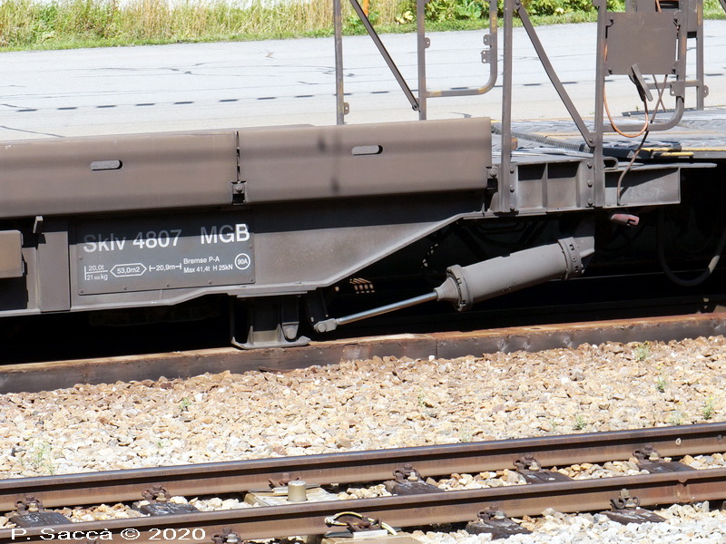 | Sopra: mezzi utilizzati con i treni navetta per il trasporto auto nella galleria di base del Furka / particolare degli stabilizzatori posizionati durante le operazioni di carico/scarico | |||||