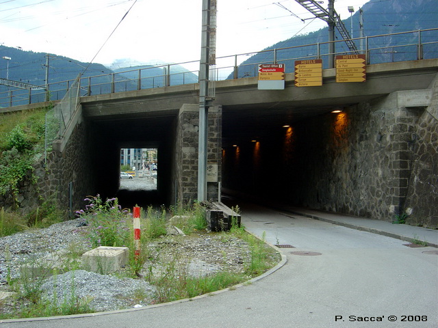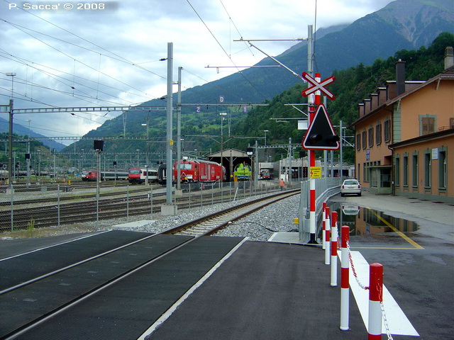 | Sopra : nuova variante lato Andermatt; i treni impegnano l'attraversamento a passo d'uomo vista la pericolosita' e anche l'imprudenza di molti ( autoveicoli & pedoni ). | |||||