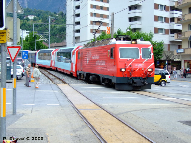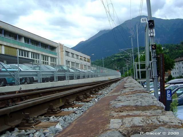 Dal dicembre 2007 con l’apertura della nuova variante, che elimina il vecchio ponte sul Rodano e l’attraversamento di Naters, i treni dopo aver attraversato il fiume su un nuovo ponte e sottopassato la linea del Sempione in prossimita’ dell’imbocco delle gallerie, entra in Briga dal lato est, in pratica dal vecchio raccordo ai magazzini merci. Tale variante trasforma Briga MGB in stazione di transito, dove non e’ quindi piu’ necessario il cambio di trazione per i treni diretti, come il Glacier Express, ma ha permesso pure trasferire il capolinea delle corse provenienti da Oberwald/Andermat alla stazione di Visp, che essendo stata trasformata con la posa dei binari MGB presso i primi marciapiedi della nuova stazione, permette l’interscambio diretto con i treni FFS e BLS ( che transitano nella nuova galleria di base del Lotschberg ) senza uscire dalla stazione come avveniva prima sia a Briga che Visp. |
