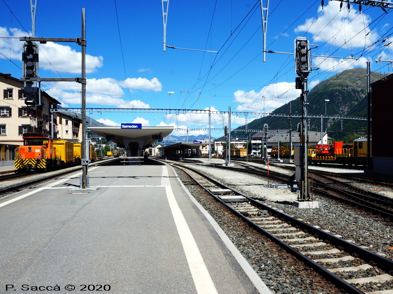 | Sopra : piazzale intermodale di Samedan, 10.2016 & 08.2020 & 09.2022 -- raccordo in linea tra Samedan - Punt Muragl | |||||