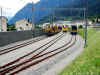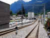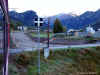 La stazione non ha spazi che permettano di allungare il binario di incrocio e con l'arrivo dei treni "Allegra", che consentono il traino di sette vetture, non permette incroci agevoli. Nelle foto sopra si vede che un treno trainato da un "Allegra" e sette vetture al traino impegna gli scambi estremi. Esiste anche il problema dei marciapiedi che ora sono a raso dei binari. La soluzione č il nuovo punto di incrocio di "Pradei" ( a sud della stazione ) dove sta sorgendo anche il nuovo scalo di ricovero. A nord di Poschiavo ragioni di sicurezza non permettono di prevedere un punto di incrocio a Privilasco, per cui si č optato per un doppio binario da questa localitā sino a Poschiavo, che consentirā incroci dinamici e l'allungamento del marciapiede del binario 1, che sarā l'unico utilizzato per servizio viaggiatori. |